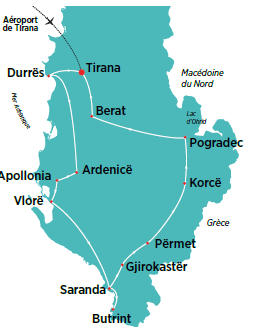 - Des villes au charme authentique — Tirana, moderne et colorée ; Berat la « ville aux mille fenêtres » ; Gjirokastër et ses maisons en pierre ; Shkodër avec son ambiance artistique.